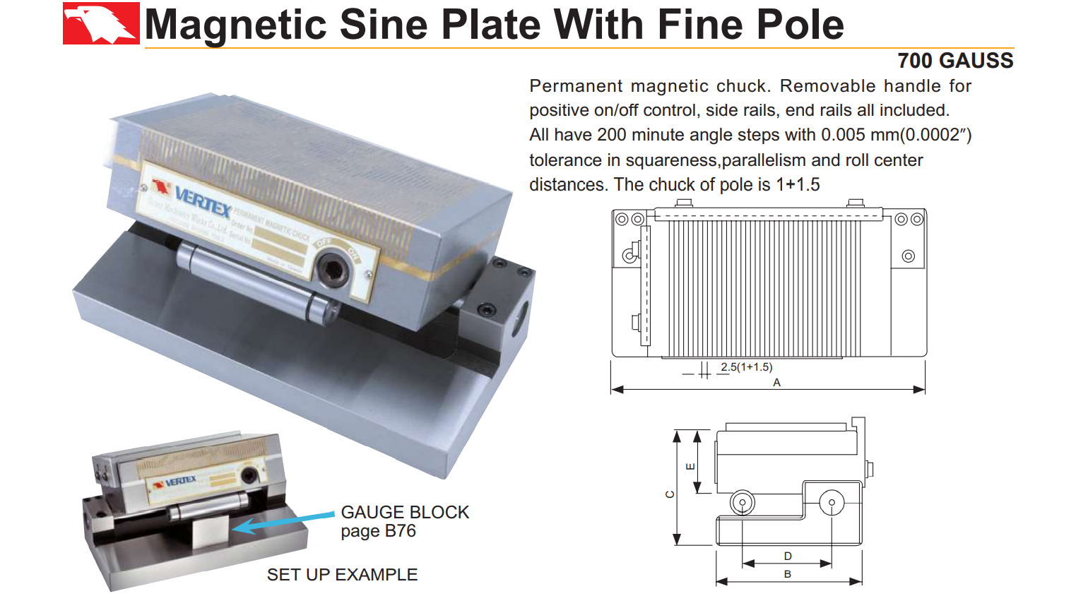 Bàn nghiêng lỗ ren Vertex V- dùng để gá các ê tô máy mài trong quá trình mài nghiêng.