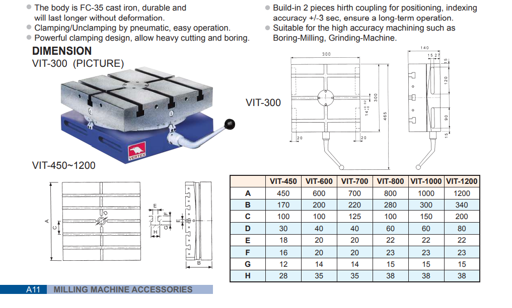 Cũng giống như bàn máy thông thường khác loại BÀN XOAY ĐỊNH VỊ CHÍNH XÁC VERTEX cũng được thiết kết các rãnh chữ T để hỗ trợ việc kẹp chặt, các bề mặt được làm phẳng một cách chính xác, tránh gây số gá đặt nhiều khi sử dụng.