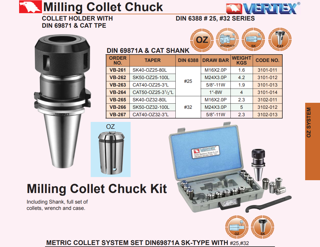 – Collet OZ-25, OZ-32 theo tiêu chuẩn MAS (xem sản phẩm Collet OZ).