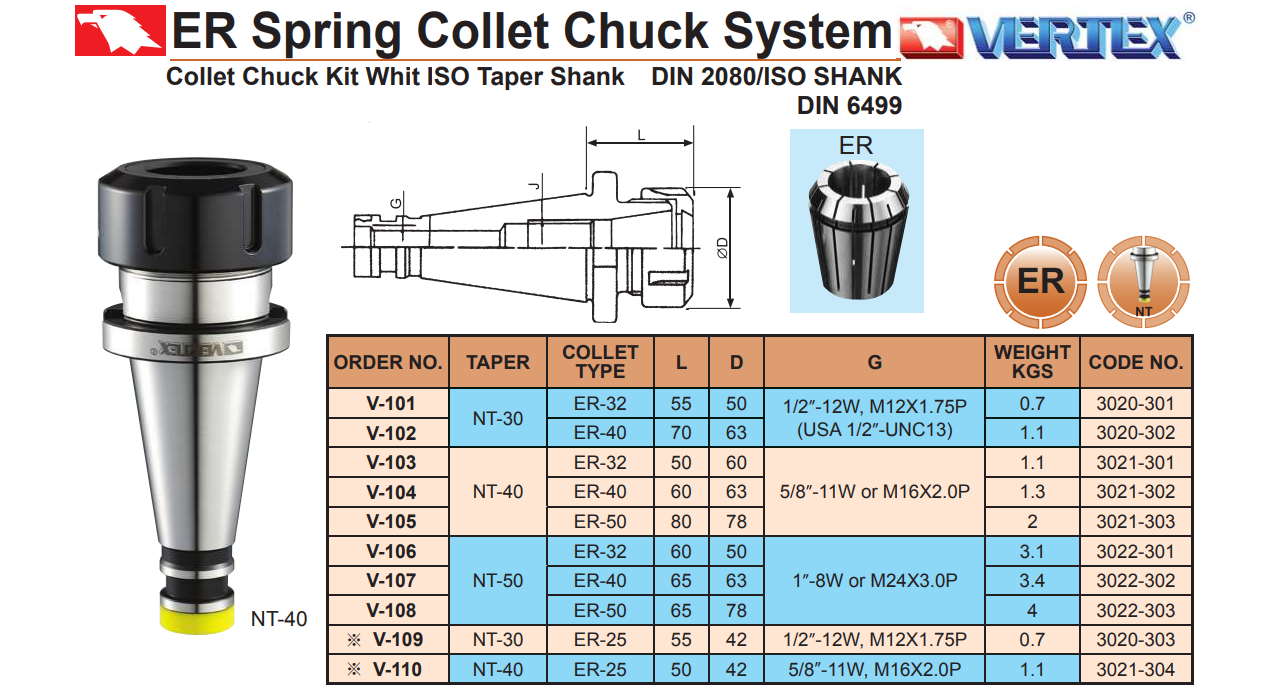 – Bảng bầu kẹp dao phay NT-ER riêng lẻ: V-101, V-102, V-103, V-104, V-105, V-106, V-107, V-108, V-109, V-110: