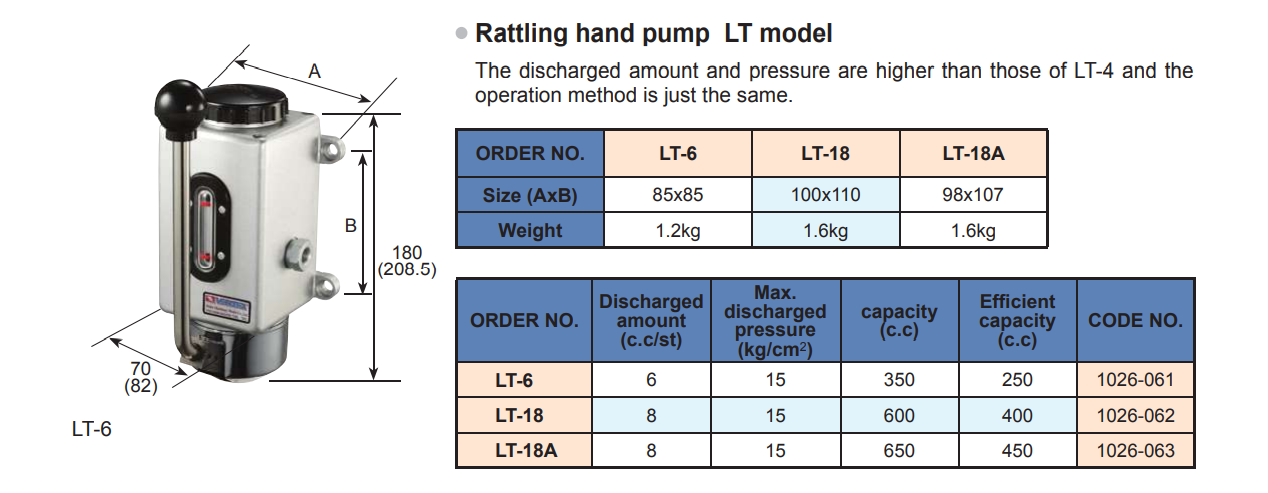 Bộ bơm dầu bằng tay Vertex LT-6 dùng để bơm dầu bôi trơn cho băng máy và các cơ cấu truyền động bằng tay khi hoạt động.