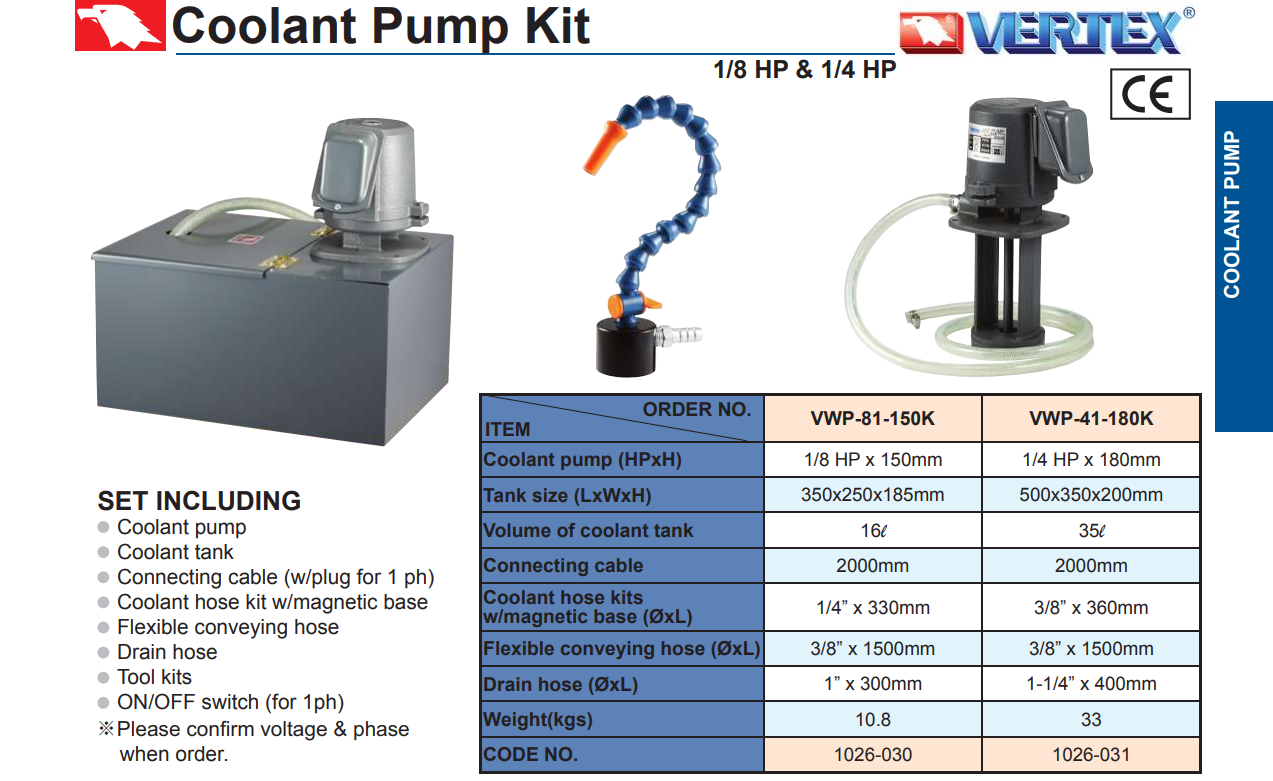Bộ bơm tưới nguội Vertex VWP-81-150K là dùng để bơm dung dịch tưới nguội trong quá trình gia công.
