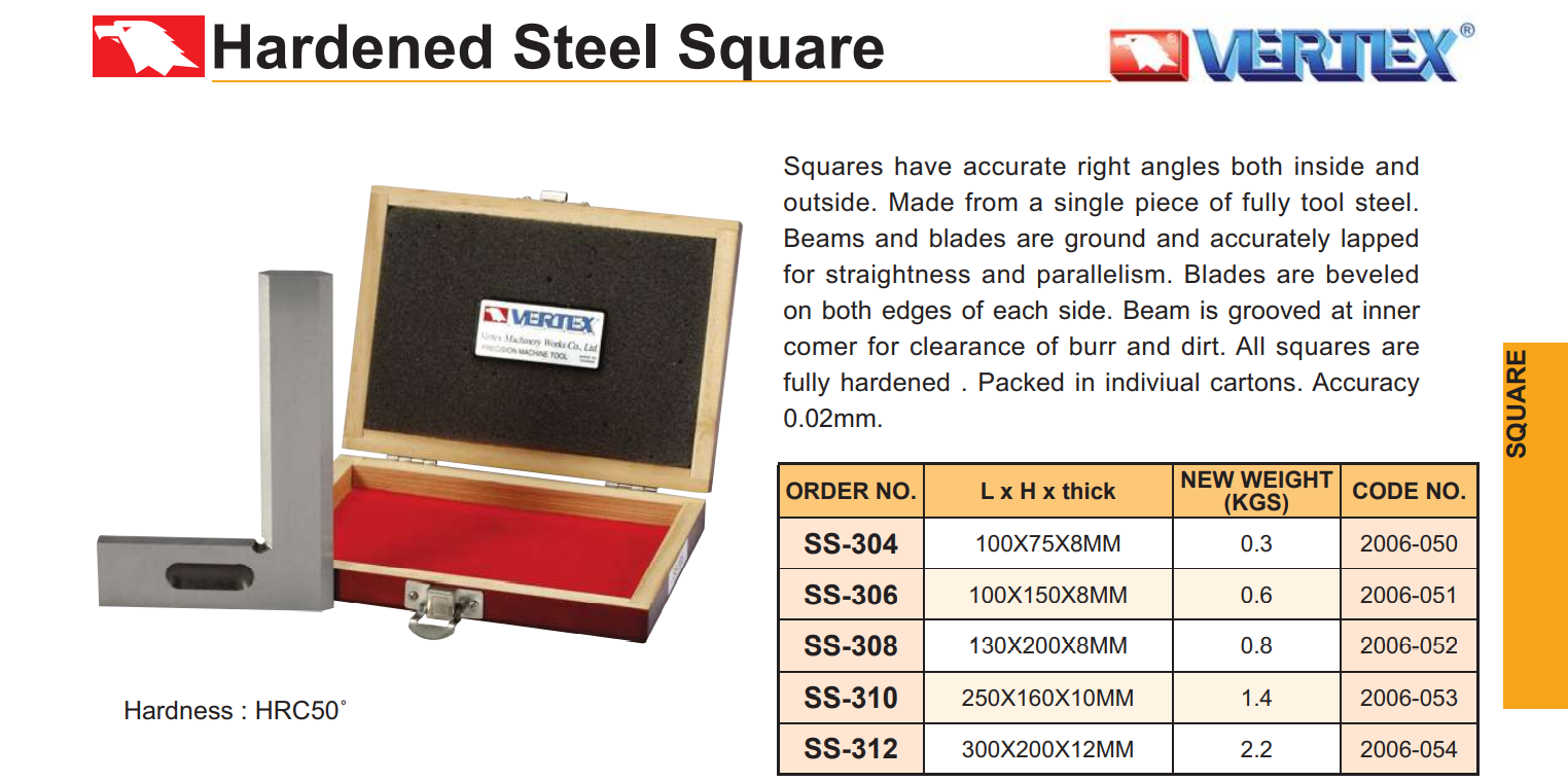 – Ke góc vuông SS-304, SS-306, SS-308, SS-310, SS-312, FS-204, FS-206, FS-208 của VERTEX được sử dụng để định vị chi tiết vuông góc với bàn máy khi gá kẹp chi tiết.