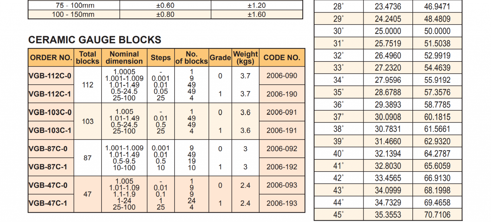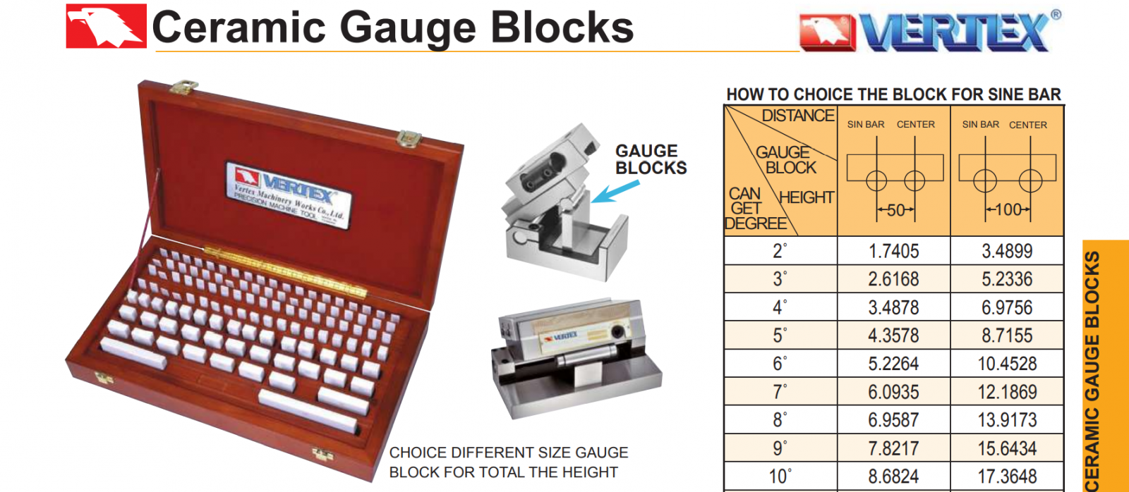 Bộ căn mẫu ceramic chính xác VGB Vertex : VGB-112C-0; VGB-112C-1 ; VGB-103C-0; VGB-103C-1; VGB-87C-0; VGB-87C-1; VGB-47C-0; VGB-47C-1