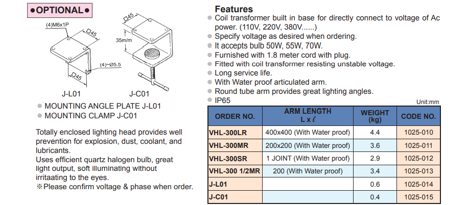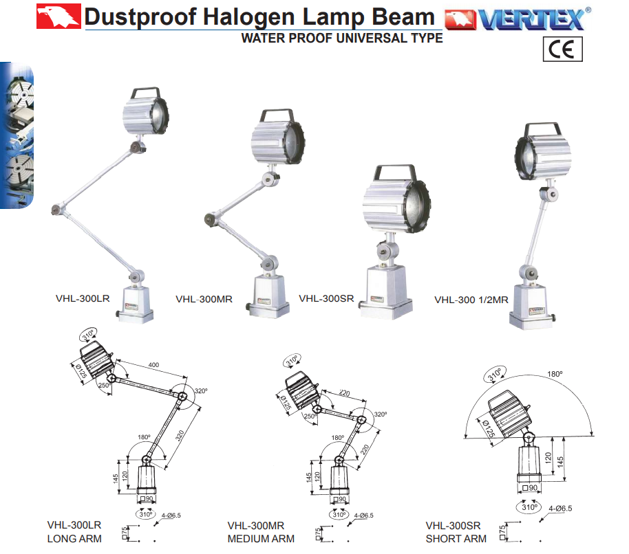 – Đèn Halogen chống bụi VHL-300LR; VHL-300MR; VHL-300SR; VHL-300 1/2MR của VERTEX dùng để chiếu sáng khu vực làm việc của máy gia công cơ khí.