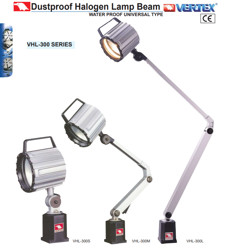 – Đèn Halogen chống bụi VHL-300S; VHL-300M; VHL-300L của VERTEX dùng để chiếu sáng khu vực làm việc của máy gia công cơ khí.