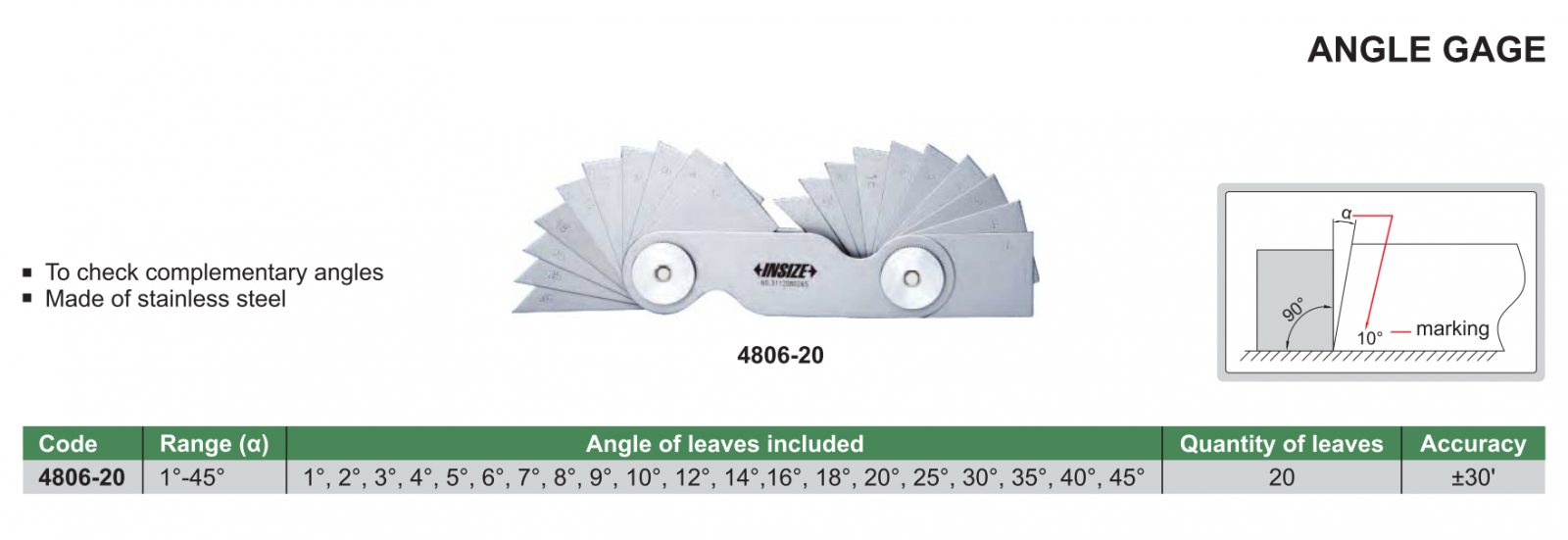Bộ dưỡng đo ren INSIZE 4806-20 , ANGLE GAGE 4806-20