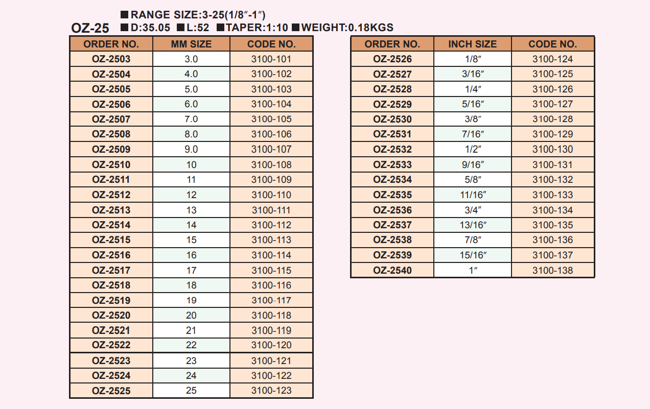 Mã sản phẩm: OZ-2503, OZ-2504, OZ-2505, OZ-2506, OZ-2507