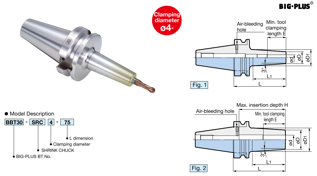 | BBT SHANK Model | Fig. | φd | φD | ΦD1 | L | L1 | H | E |