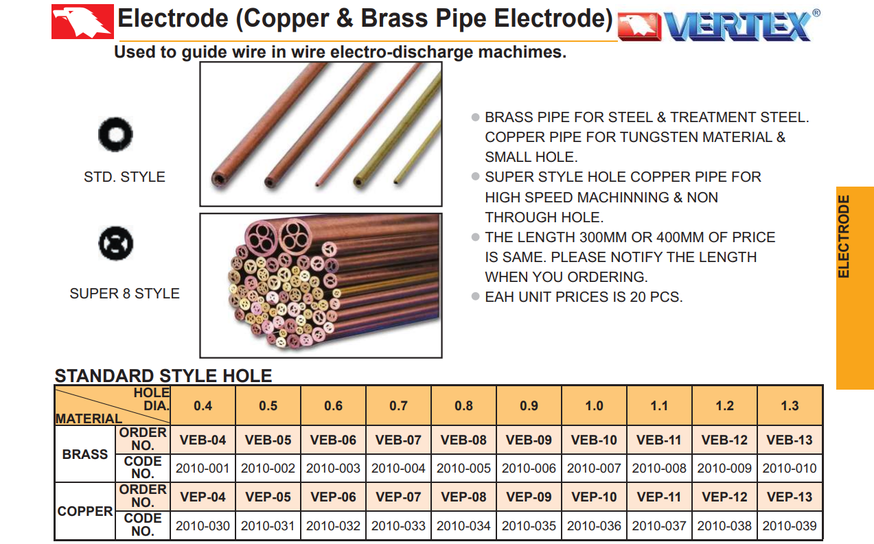ĐIỆN CỰC ĐỒNG THAU CHO MÁY XUNG VERTEX VEP-19 , VEP-20 , VEP-21 , VEP-22