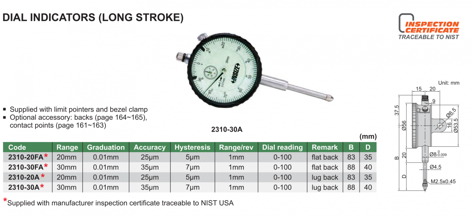 Đồng hồ so chân gập INSIZE là loại đông hồ so ứng dụng đo độ dơ, độ lệch trong gia công và sản xuất cơ khí