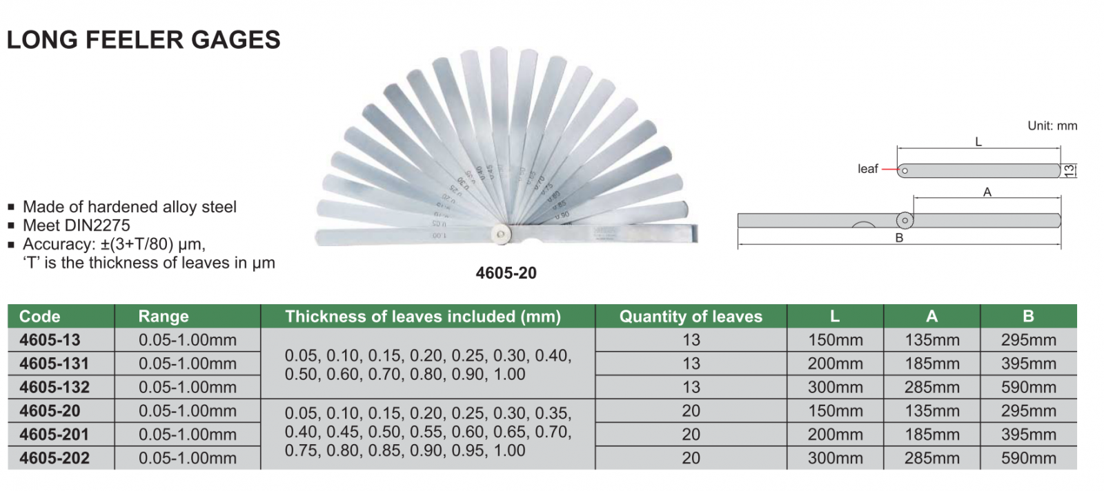 Dưỡng đo độ dày INSIZE 4605-20 , LONG FEELER GAGES 4605-20