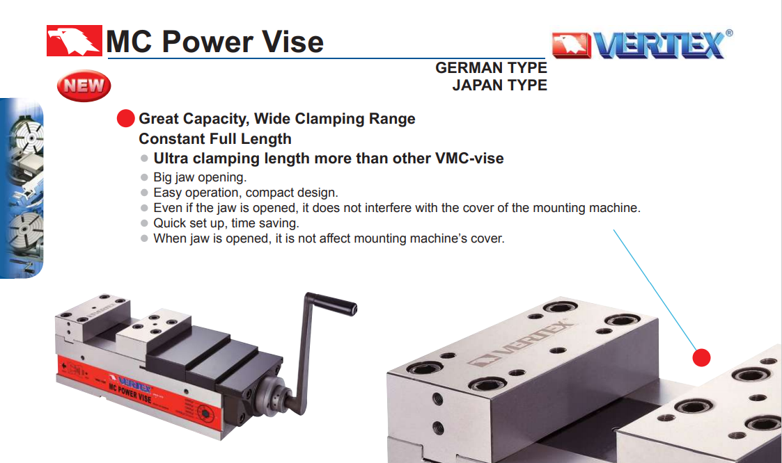 – Ê tô cường lực VQC của VERTEX có khả năng gá kẹp nhanh, nhẹ nhàng, khóa nhanh chóng, chính xác, đơn giản khi sử dụng.