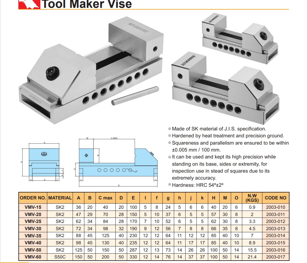 – Ê tô máy mài VMV được sử dụng chủ yếu trên máy mài, máy EDM, và cả trên máy phay,…
