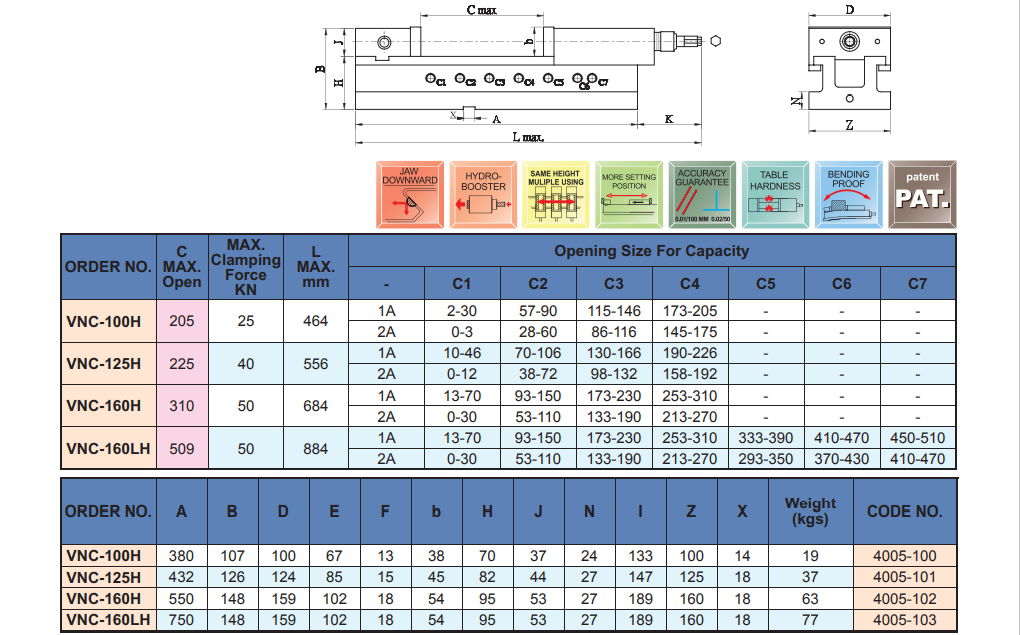 • Ê TÔ THỦY LỰC mã VNC-100H, VNC-125H, VNC-160H, VNC-160LH được hãng Vertex sản xuất với chất lượng cao, sản phẩm được sử dụng nhiều trên các loại máy phay CNC, NC, và một số loại máy phay vạn năng hay máy gia công cơ khí khác như máy mài, máy khoan, máy trung tâm gia công và ứng dụng cho nhiều máy khác...