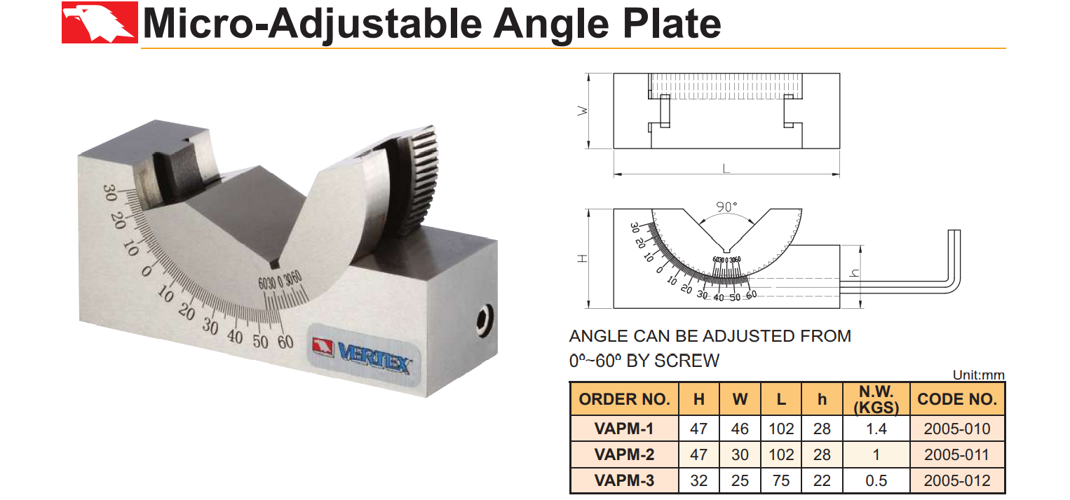 – Khối V điều chỉnh góc nghiêng VAPM-1, VAPM-2, VAPM-3 của VERTEX được sử dụng để định vị tạo góc nghiêng cho chi tiết khi phay, khoan, mài,… Quý khách có thể tham khảo 1 số cách định vị gá kẹp góc nghiêng như hình trên.