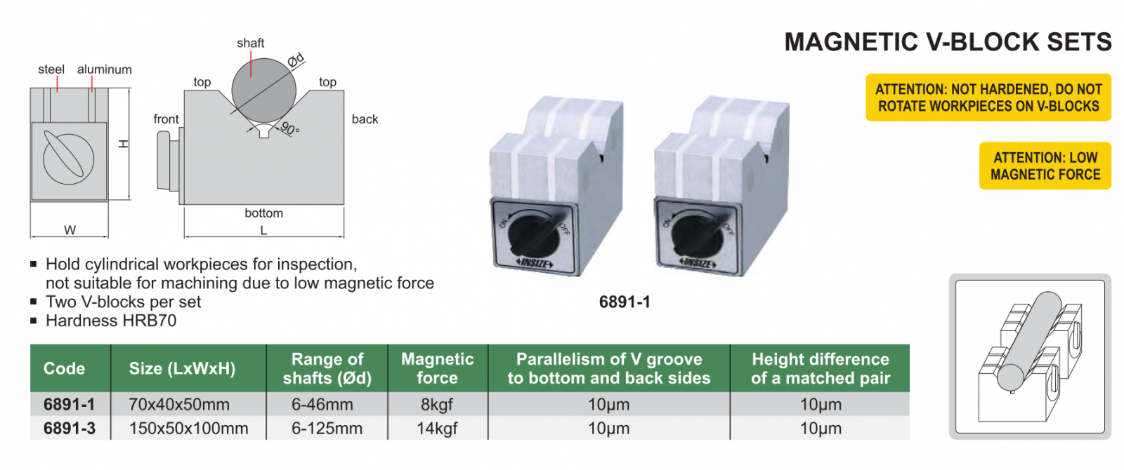 Khối V từ cố định INSIZE 6891-1 , MAGNETIC V-BLOCK SETS 6891-1