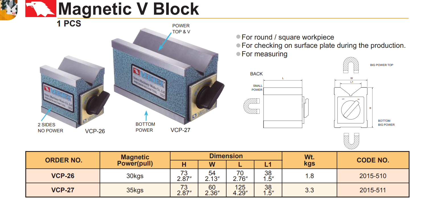 Khối V từ tính Vertex VCP-27 dùng để gá kẹp chi tiết tròn trong quá trình đo kiểm…