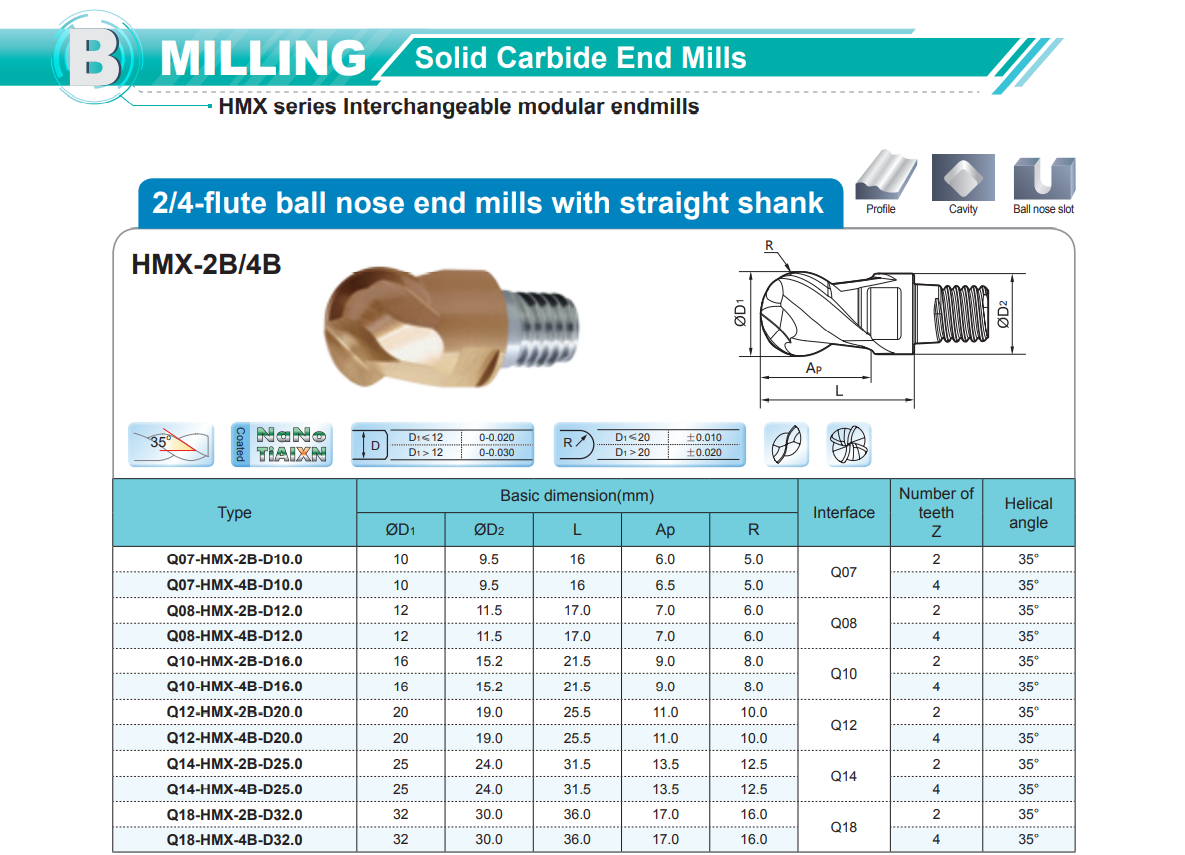 Lưỡi dao phay hợp kim ZCCCT HMX-2B/4B là dòng dụng cụ cắt đa dụng cho hiệu suất cực cao tạo bề mặt chi tiết mịn bóng, dụng cụ cắt này áp dụng cho công việc gia công nhiều vật liệu như các loại thép hợp kim, thép gang, thép dẻo, Inox ... thích hợp gia công độ chính xác cao, đáp ứng được những tiêu chuẩn khắt khe trong gia công.