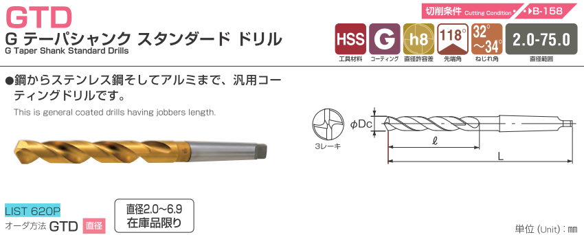 Mũi khoan NACHI LIST 620P là dòng mũi khoan thép gió chuôi côn phủ vàng sử dụng cho nhiều vật liệu khác nhau. Thích hợp gia công thép khuôn, thép thường và có thể làm việc được với nhiều vật liệu khác nhau. Mũi khoan được phủ để tăng độ bền, hạn chế sinh nhiệt trong quá trình gia công