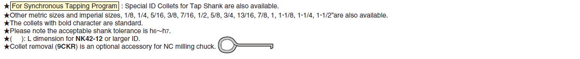KM Collet Code No. (OD-ID) |