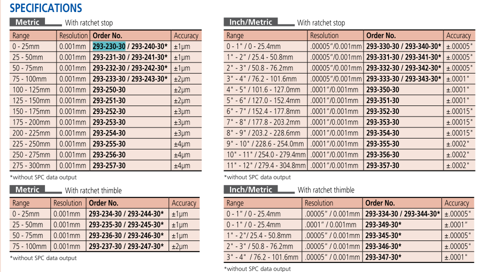 Mã hàng 293-251-30 là dụng cụ đo panme cơ khí điện tử đo ngoài khoảng đo từ 125-150mm/0.001mm