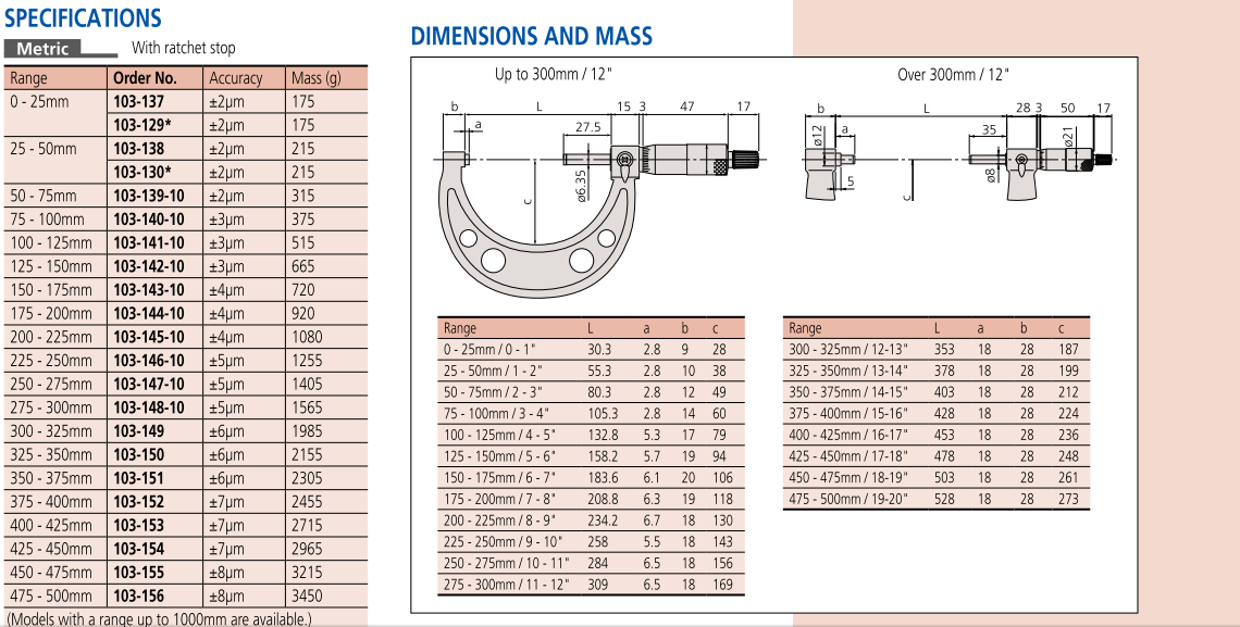 Mã hàng 103-149 là dụng cụ đo panme cơ khí đo ngoài khoảng đo từ 300-325mm/0.01mm