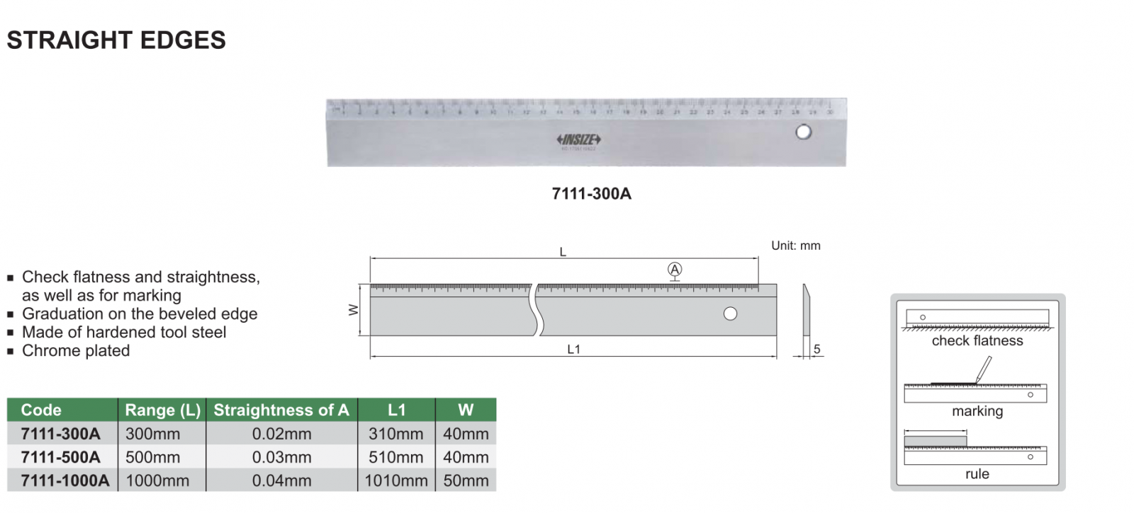 Thước đo độ thẳng INSIZE 7111-300A , STRAIGHT EDGES 7111-300A
