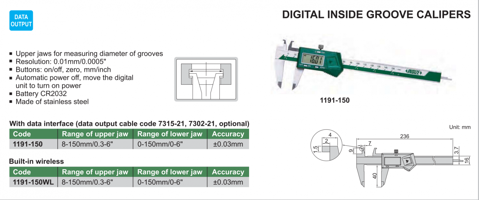 Thước điện tử đo rãnh INSIZE là đồ dùng có nhiều chức năng phạm vi đo rộng, độ chính xác tương đối cao, dễ sử dụng, giá cả rẻ…